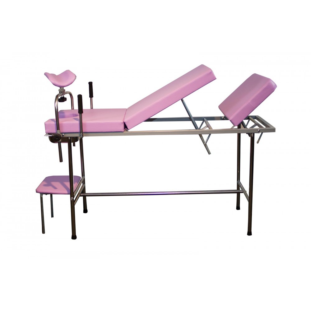 Masa ginecologica 3 sectiuni:180x62x90(h)cm;spatar, tetiera si suporti picioare reglabile;scarita rabatabila; schelet metalic vopsit electrostatic argintiu;picioare inox;tavita inox;tapiterie din piele ecologica,diverse culori,poliuretan de 6 cm