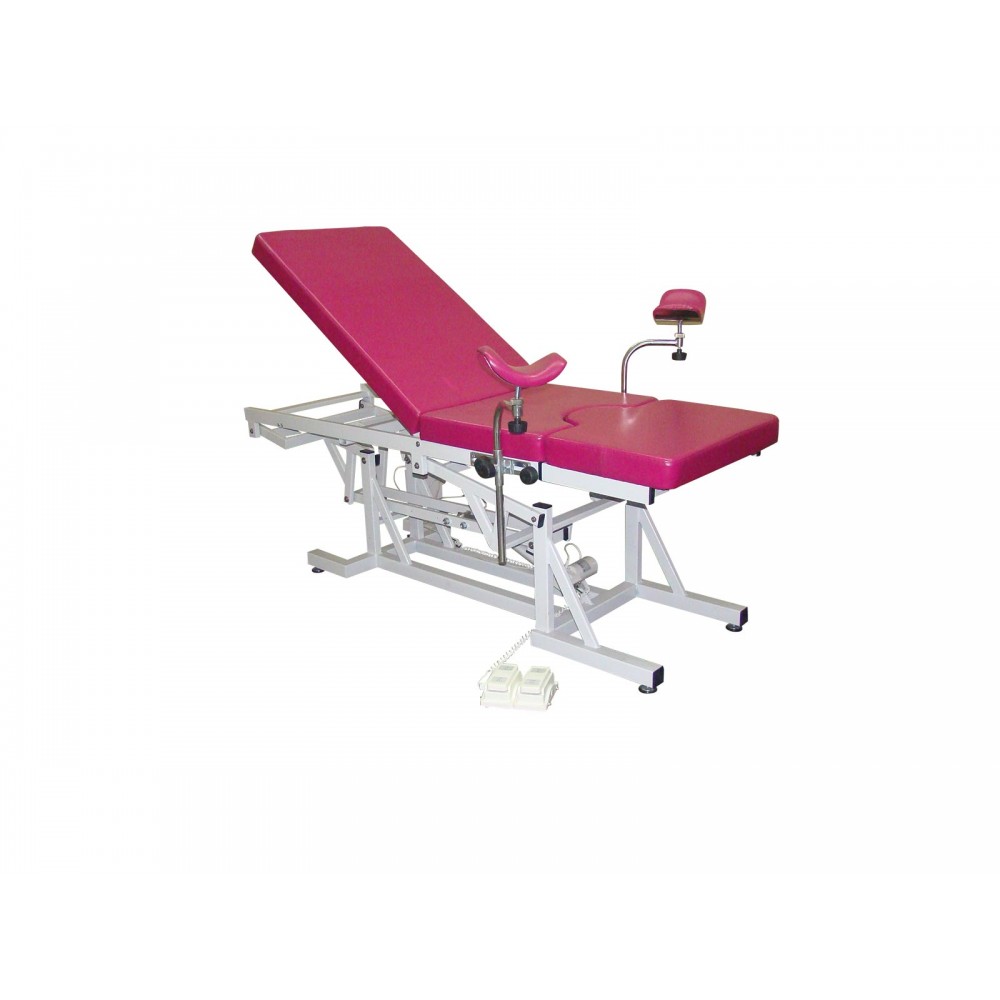 Masa ginecologica cu actionare electrica ( 2 motore ) - dimensiune 1900x600x1000mm(h); plaja de ridicare: h minim 500 mm - h max 1000 mm; suport picioare reglabil vertical si orizontal 360° cu pivot rotativ pe 12°, schelet metalic vopsit in camp electrostatic, picioare reglabile, tapiterie cu poliuretan gros de 60 mm, tapitata din piele ecologica diverse culori, 2 motore electrice actionate cu comanda de picior, sarcina maxima de ridicare 200 kg , tava colectare din inox